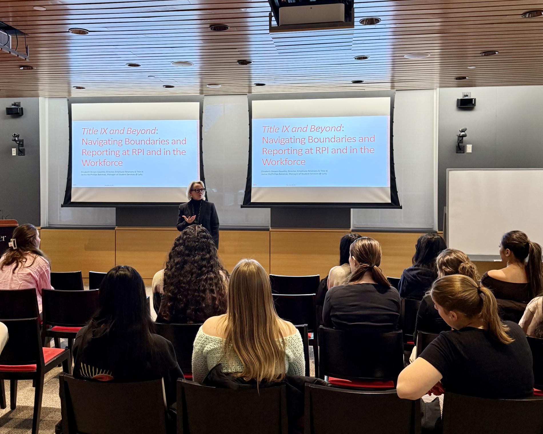 The RPI Lally School of Management, in collaboration with the Rensselaer Finance Club, Women in Business, and the Society of Women Engineers, hosted Title IX and Beyond. It was a powerful discussion exploring workplace rights, personal boundaries, and strategies for defusing difficult situations and effective bystander intervention.